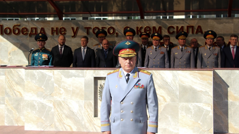 Затем к присутствующим обратился главнокомандующий Сухопутными войсками Вооруженных сил РФ генерал армии Олег Салюков. Он зачитал участникам торжества приветствие от министра обороны России Сергея Шойгу.