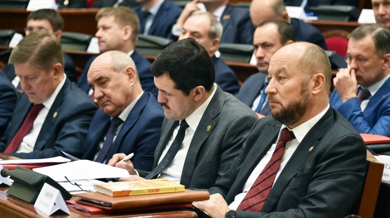 Рустам Минниханов, открывая заседание, поздравил Героя Труда РФ Минтимера Шаймиева с Днём Героев Отечества.