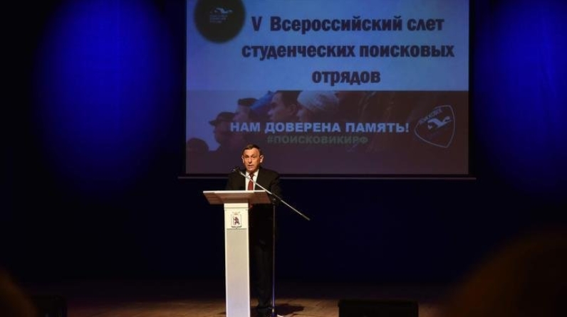V Всероссийский слет студенческих поисковых отрядов официально открыл Глава Марий Эл Александр Евстифеев.