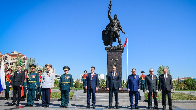 После этого состоялось торжественное открытие нового памятника Советскому солдату. В основе собирательного образа воина, запечатленного в памятнике, - подвиг сына татарского народа Гази Загитова, который 30 апреля 1945 года вместе с однополчанами водрузил Красное Знамя над рейхстагом в Берлине.