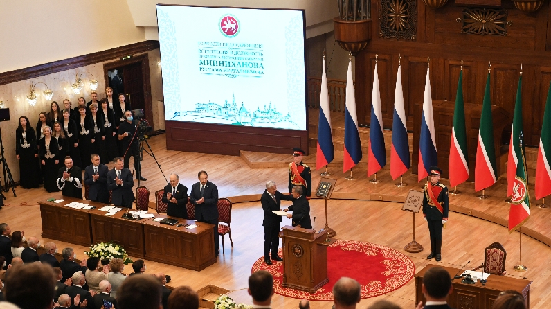 Избранный глава региона произнес присягу на верность народу республики, Конституции Российской Федерации и Конституции Татарстана. Затем было официально объявлено о вступлении Рустама Минниханова в должность Президента Республики Татарстан.