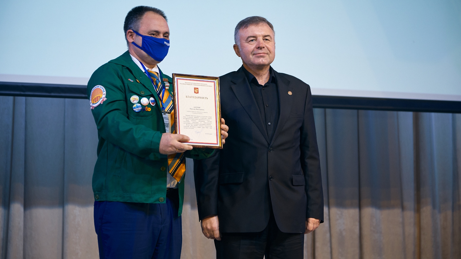 Отдельные слова признательности в этот непростой год – тем, кто принял и принимает сегодня активное непосредственное участие в противодействии распространению пандемии COVID-19. Рискуя здоровьем, тысячи молодых людей нашего округа включились в работу по поддержке пожилых граждан и людей с ограниченными физическими возможностями. Показателем эффективности работы студотрядов Приволжья является и то, что Окружной штаб студенческих отрядов ПФО в 2019 году занял 1 место среди аналогичных окружных структур нашей большой страны».