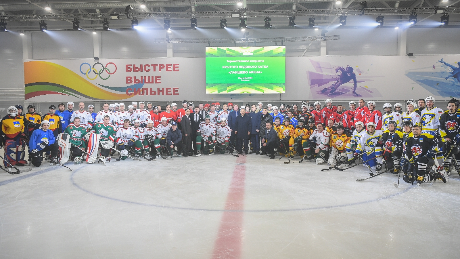 Затем на льду «Лаишево Арена» стартовал первый хоккейный турнир. Президент Татарстана Рустам Минниханов произвел символическое вбрасывание шайбы.