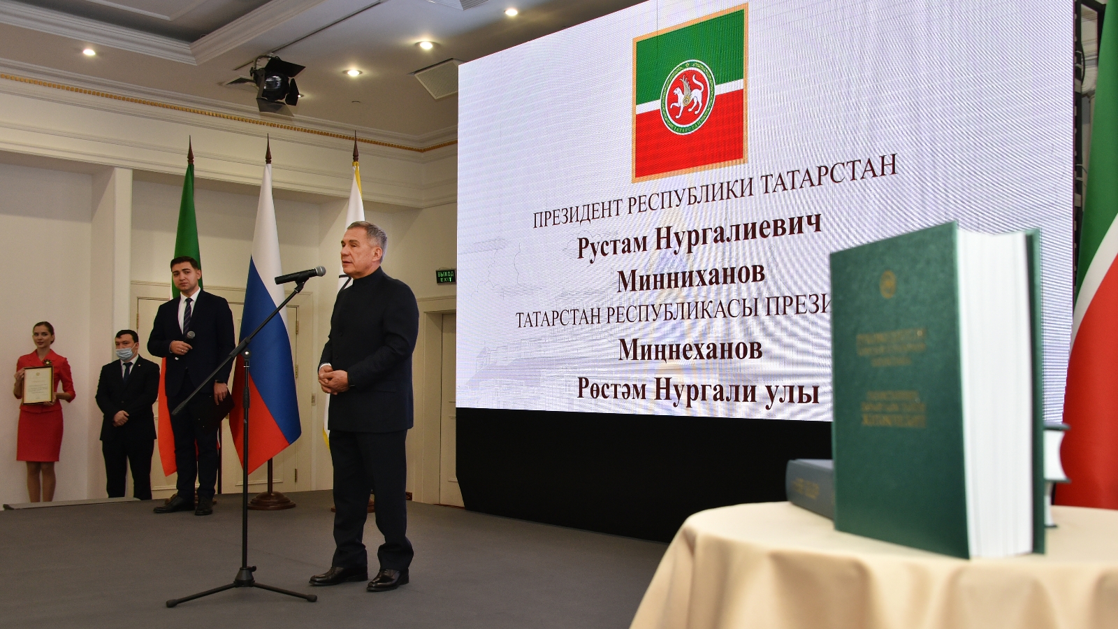 17 декабря 2020 года на площадке ГТРК «Корстон», Президент Татарстана Рустам Минниханов, Председатель Государственного Совета Республики Татарстан Фарид Мухаметшин, Премьер-министр РТ Алексей Песошин, Главный федеральный инспектор по Республике Татарстан Виктор Демидов, Руководитель Аппарата Президента РТ Асгат Сафаров и другие руководители министерств, ведомств и муниципальных образований приняли участие в презентации книги-трехтомника «Руководители городов и районов Татарстана».