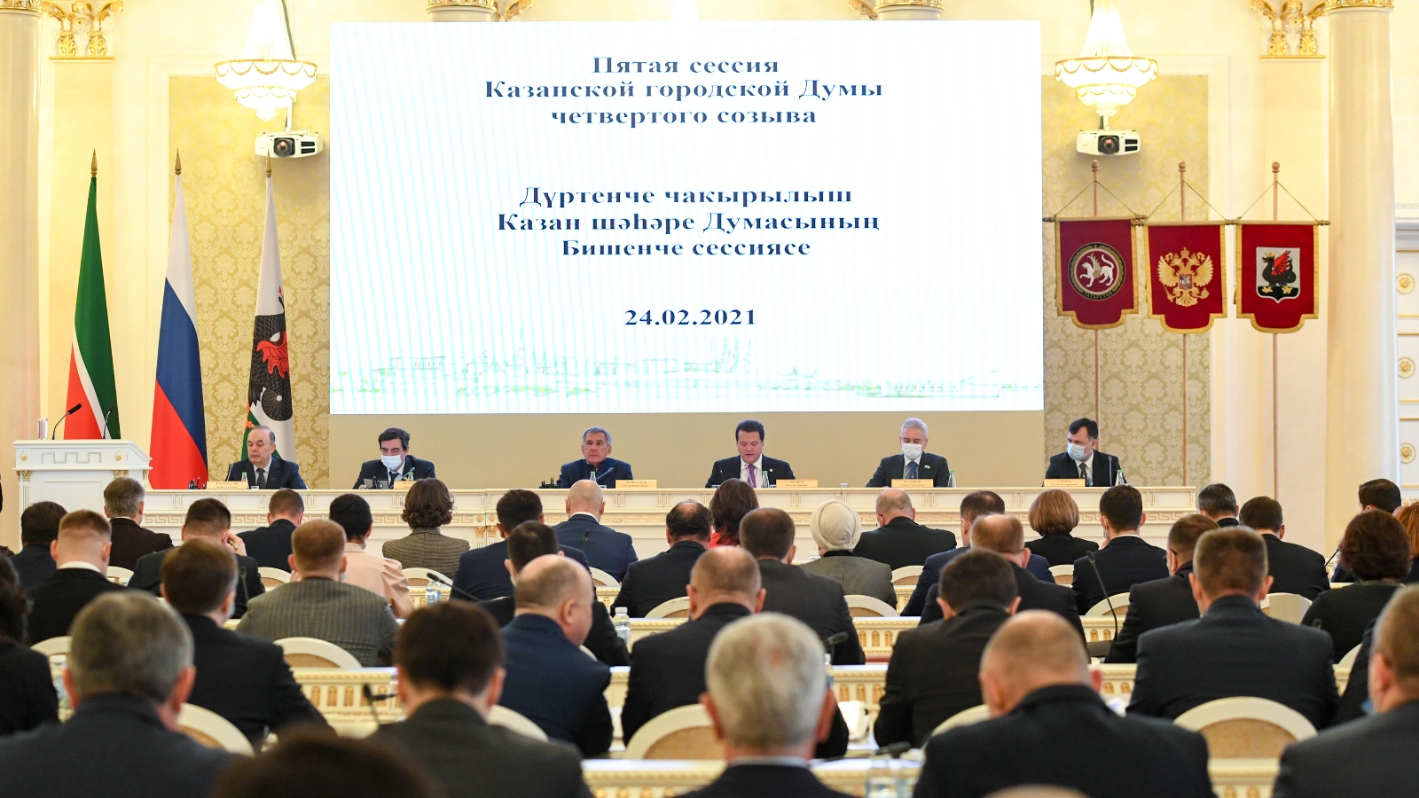 24 февраля 2021 года в Ратуше прошла V сессия Казанской городской Думы четвертого созыва. В мероприятии приняли участие Президент Республики Татарстан Рустам Минниханов, Главный федеральный инспектор по РТ Виктор Демидов и другие руководители органов власти республики.