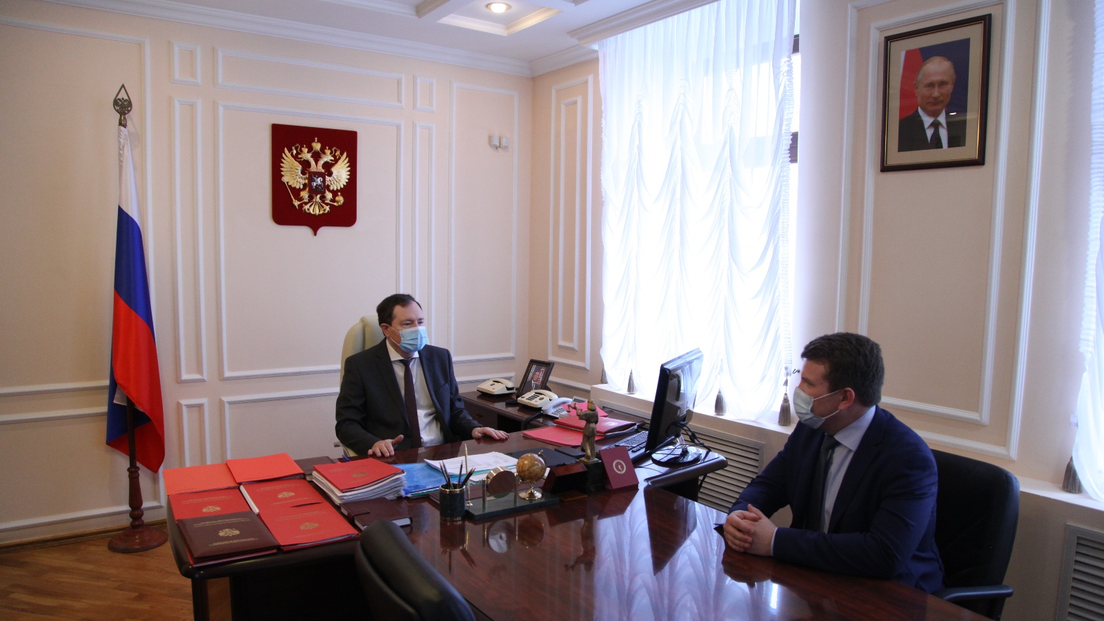 В соответствии с поручением полномочного представителя Президента Российской Федерации в Приволжском федеральном округе Игоря Комарова, 23 марта 2021 года Главный федеральный инспектор по РТ Виктор Демидов провел встречу с двумя кандидатами, рекомендованными Квалификационной коллегией судей Республики Татарстан, к назначению на должности судей Верховного Суда Республики Татарстан.