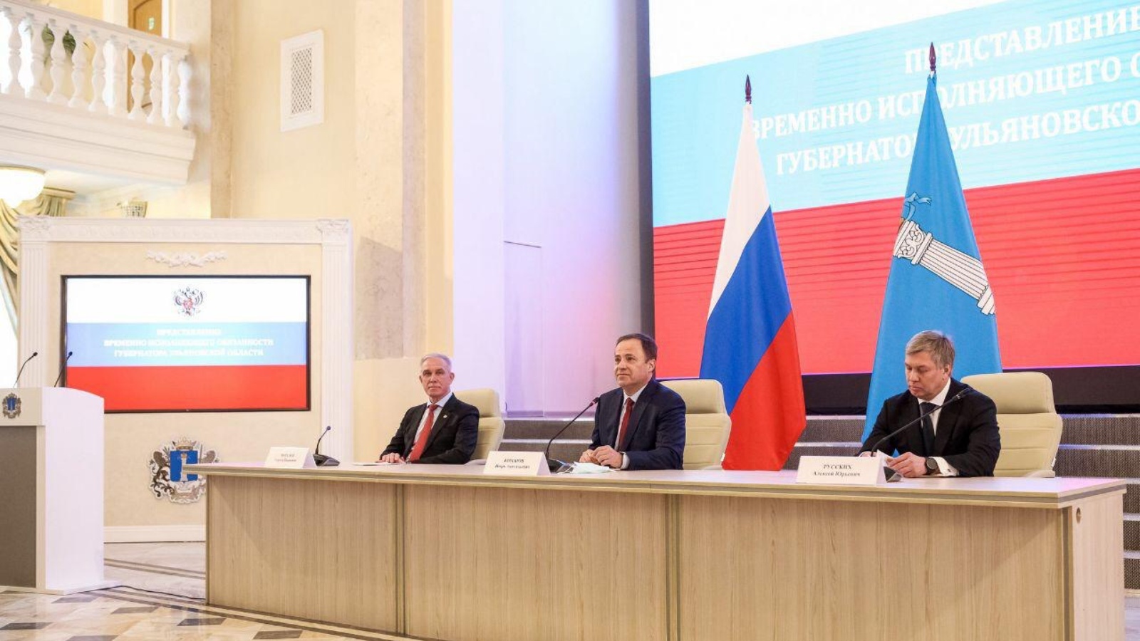 Врио главы региона отметил, что Ульяновская область должна продолжать двигаться вперед: привлекать инвестиции, открывать производства, создавать новые рабочие места, развивать промышленный потенциал. Регион стабильно входит в двадцатку лидеров по производству зерна, и надо не просто удержать эту позицию, но и повысить показатели. Важной задачей станет реализация национальных проектов. «Первоочередная задача - это формирование правительства. Мы будем опираться на местные кадры», - отметил Алексей Русских.