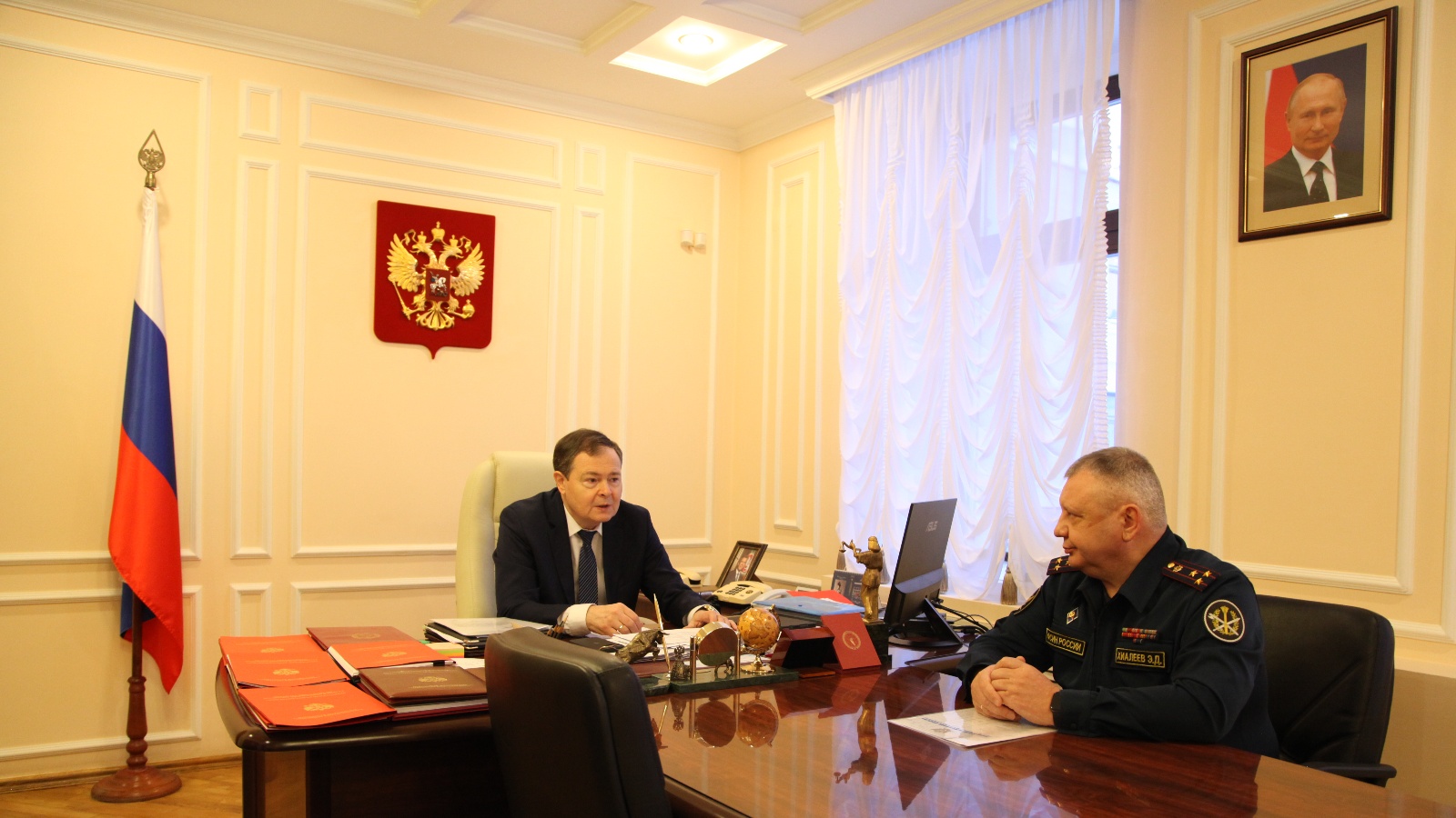 В соответствии с поручением полномочного представителя Президента Российской Федерации в Приволжском федеральном округе Игоря Комарова, 19 января 2022 года Главный федеральный инспектор по РТ Виктор Демидов провел встречу с кандидатами, рекомендованными Квалификационной коллегией судей Республики Татарстан к назначению на должности судьи Верховного Суда РТ и двух судей Арбитражного суда РТ.