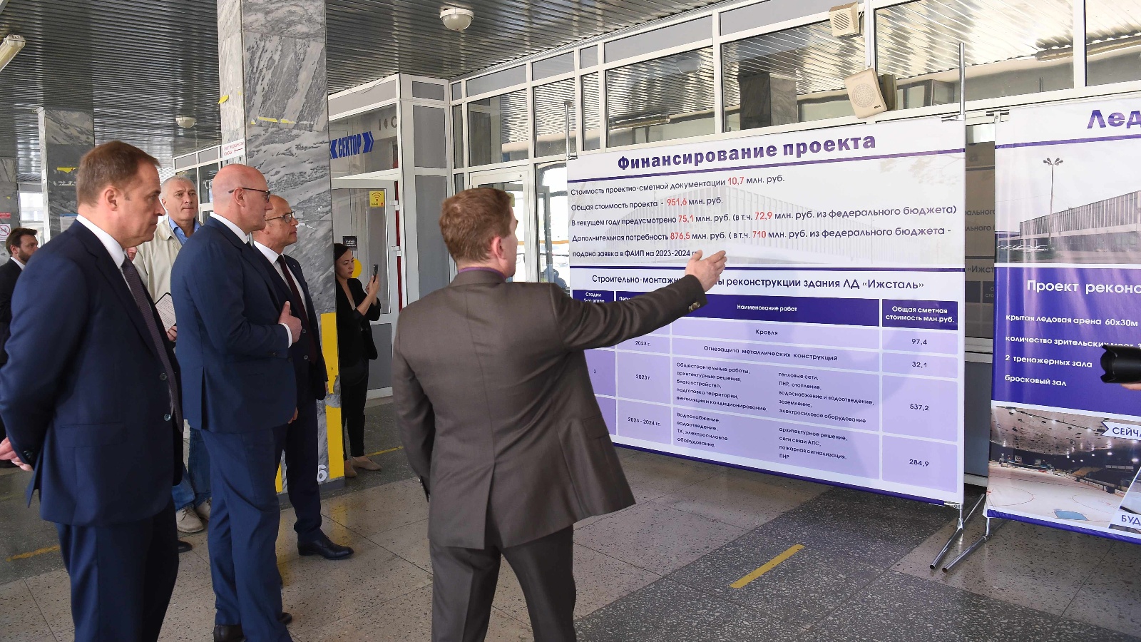 «У региона накоплен положительный опыт строительства спортивных объектов в партнёрстве с бизнесом. В частности, при поддержке инвесторов в прошлом году в городе был открыт современный плавательный бассейн, который мы посетили. Такой подход необходимо масштабировать и при реализации федпроекта «Бизнес-спринт». У нас также есть поручение Президента по проведению капремонта спортивных объектов в стране. В рамках его исполнения принято решение поддержать Удмуртию, поручив профильным министерствам проработать вопрос софинансирования из федбюджета реконструкции ледовой арены «Ижсталь», которую мы сегодня осмотрели. Субъект со своей стороны должен оперативно подготовить и предоставить всю необходимую документацию», - добавил вице-премьер.