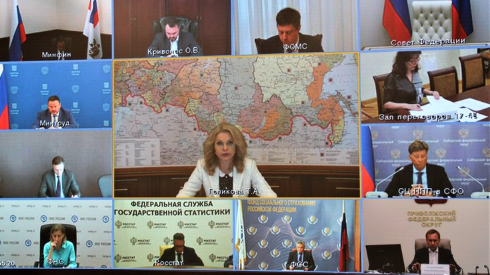 В заседании межведомственной рабочей группы по вопросу восстановления рынка труда приняли участие руководители (заместители руководителей) профильных федеральных органов исполнительной власти (Минтруда, Минфина, Минпромторга, Роструда, ФНС России), заместители полномочных представителей Президента Российской Федерации в федеральных округах, главы регионов и их заместители.