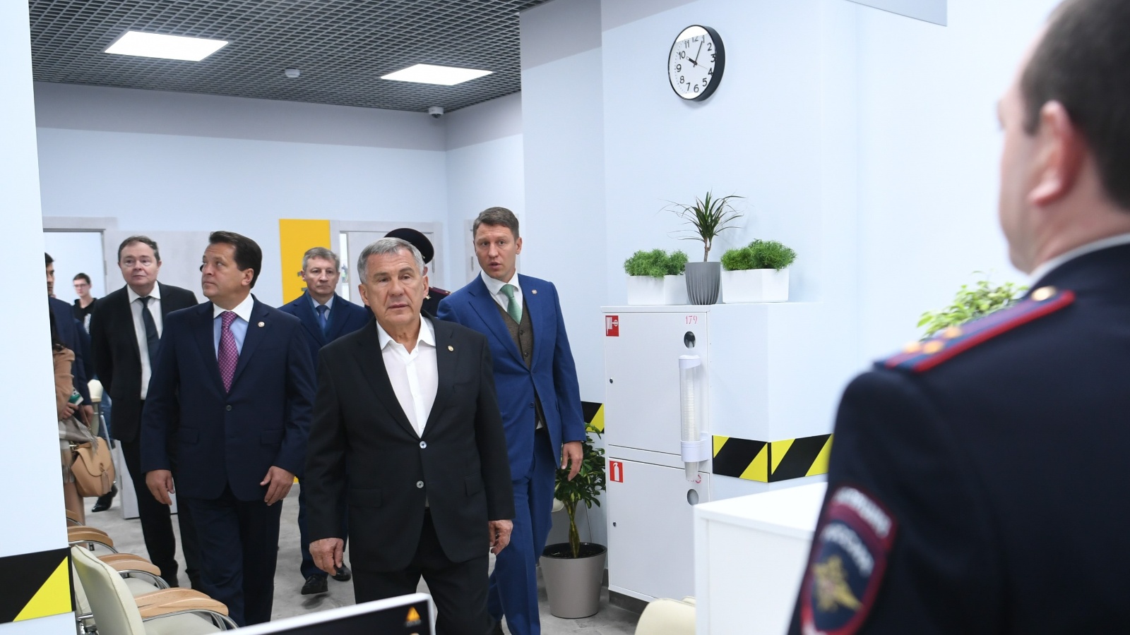 Рустам Минниханов, Виктор Демидов, Артем Хохорин и Ильсур Метшин осмотрели помещения охранного пункта: зону для приема и консультации посетителей, рабочие кабинеты сотрудников. Все комнаты оснащены мебелью и необходимым оборудованием.