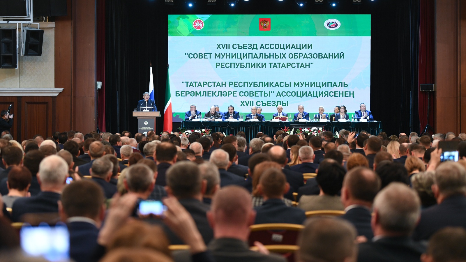 21 декабря 2022 года на площадке ГТРК «Корстон» состоялся XVII съезд Ассоциации «Совет муниципальных образований Республики Татарстан». В работе приняли участие Президент Татарстана Рустам Минниханов, Государственный Советник РТ Минтимер Шаймиев, Главный федеральный инспектор по Республике Татарстан Виктор Демидов, Председатель Государственного Совета РТ Фарид Мухаметшин, Премьер-министр РТ Алексей Песошин, руководители различных министерств и ведомств, главы муниципальных образований республики.