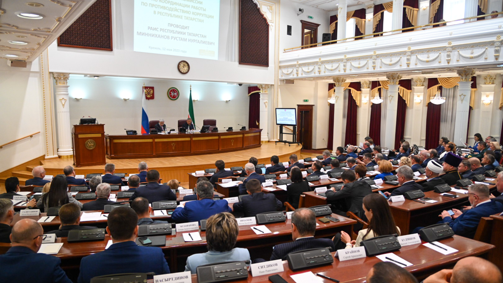 12 мая 2023 года в Казанском Кремле состоялось заседание Комиссии по координации работы по противодействию коррупции РТ. Заседание провел Глава (Раис) Республики Татарстан Рустам Минниханов.