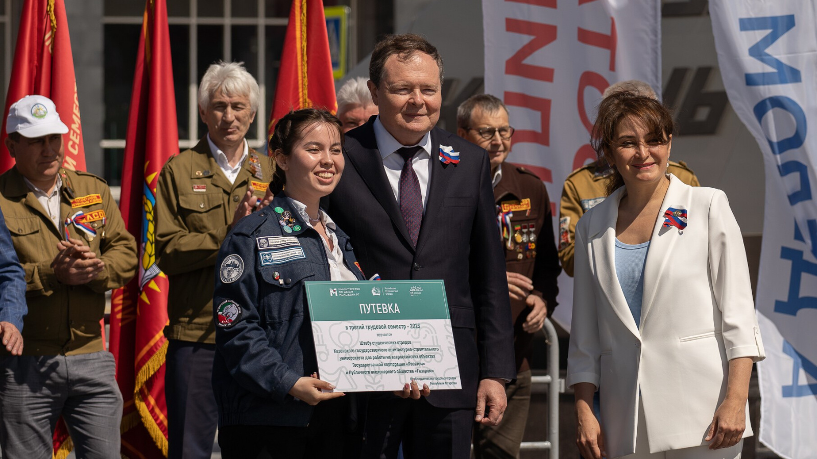12 июня 2023 года в Казани стартовал третий трудовой семестр студенческих отрядов Татарстана. В честь этого события на площадке около стелы «Казань — город трудовой доблести» провели церемонию, на которой более тысячи представителей студотрядов республики получили летние трудовые путевки.