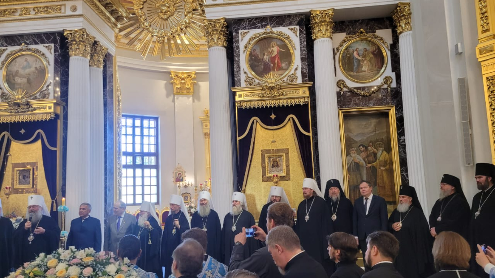 «Сегодня у нас большой праздник — явление иконы Пресвятой Богородицы в Казани. Для нас большая честь приветствовать гостей из Беларуси, Подмосковья, других регионов России и районов Татарстана», - сказал прихожанам Рустам Минниханов. Он подчеркнул, что самое главное - это мир и согласие среди народов, процветание России. «Мы живем в непростое время, и только единение всех нас даст тот результат, которого мы обязательно достигнем. Победа будет за нами. Мы все вместе», — отметил Раис Татарстана.