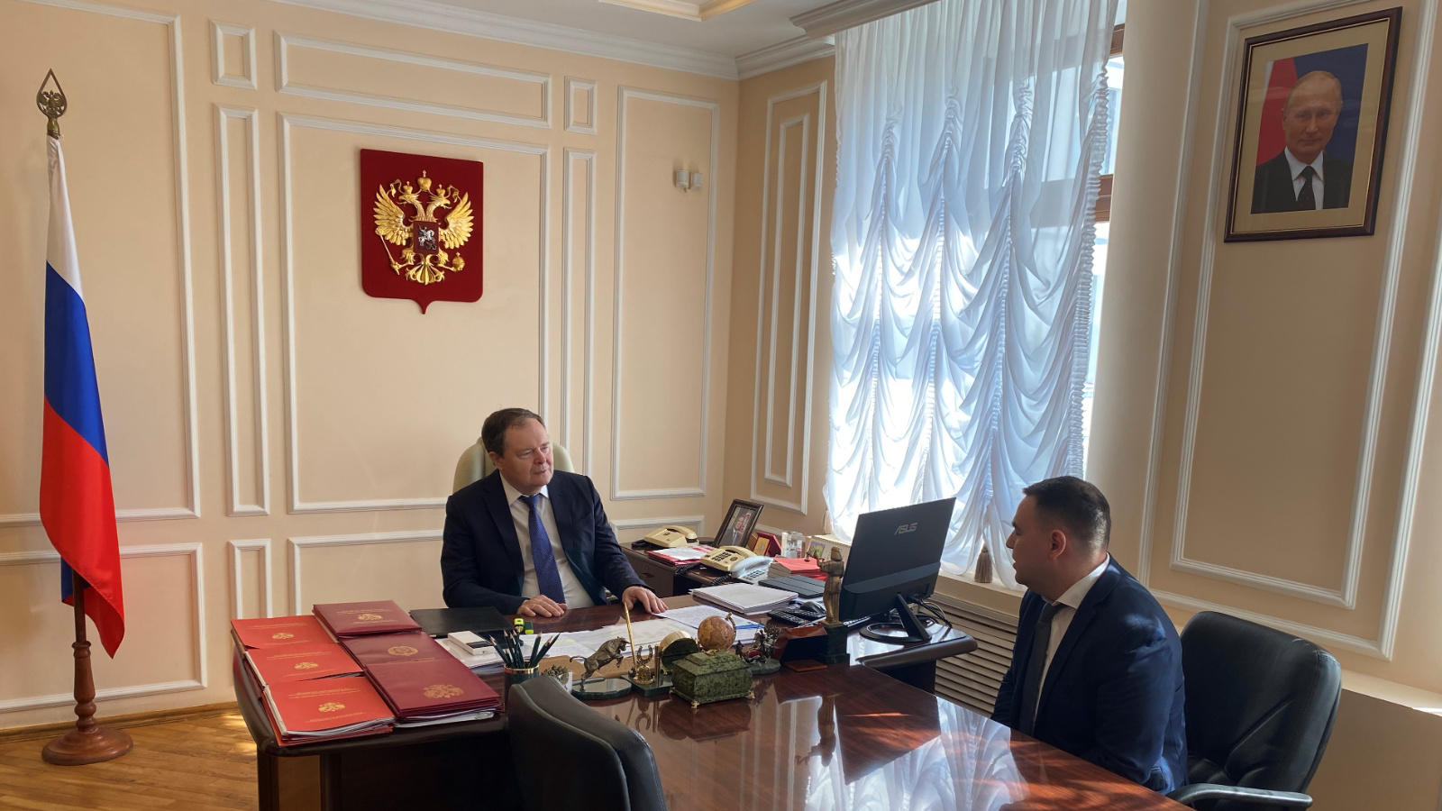 В соответствии с поручением полномочного представителя Президента Российской Федерации в Приволжском федеральном округе Игоря Комарова, 10 августа 2023 года Главный федеральный инспектор по РТ Виктор Демидов провел встречу с кандидатом, рекомендованным Квалификационной коллегией судей Республики Татарстан к назначению на должность судьи Верховного суда РТ.