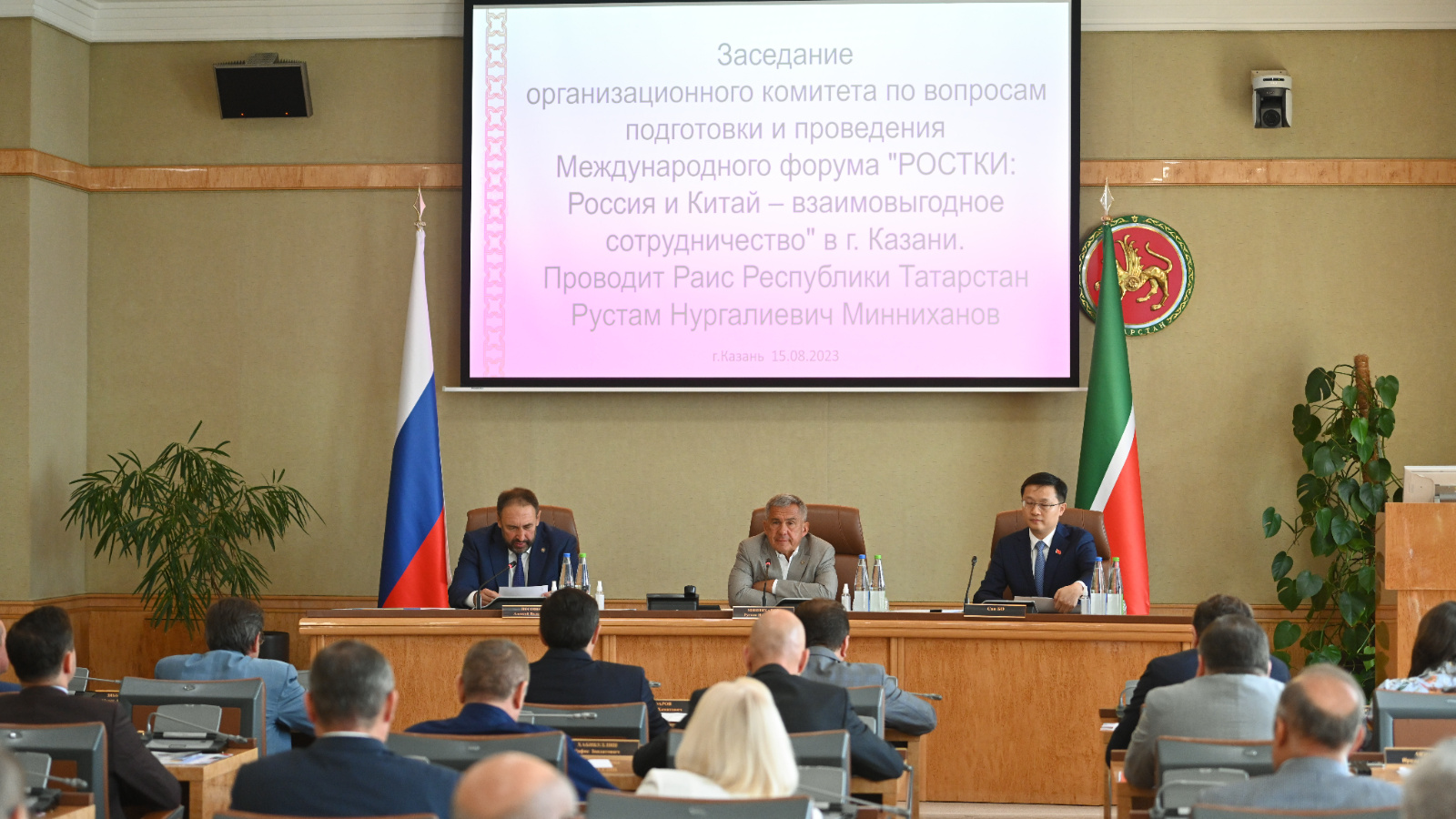 Заседание оргкомитета по подготовке и проведению в Казани Международного форума «РОСТКИ: Россия и Китай – взаимовыгодное сотрудничество» состоялось 15 августа 2023 года в Доме Правительства Республики Татарстан.