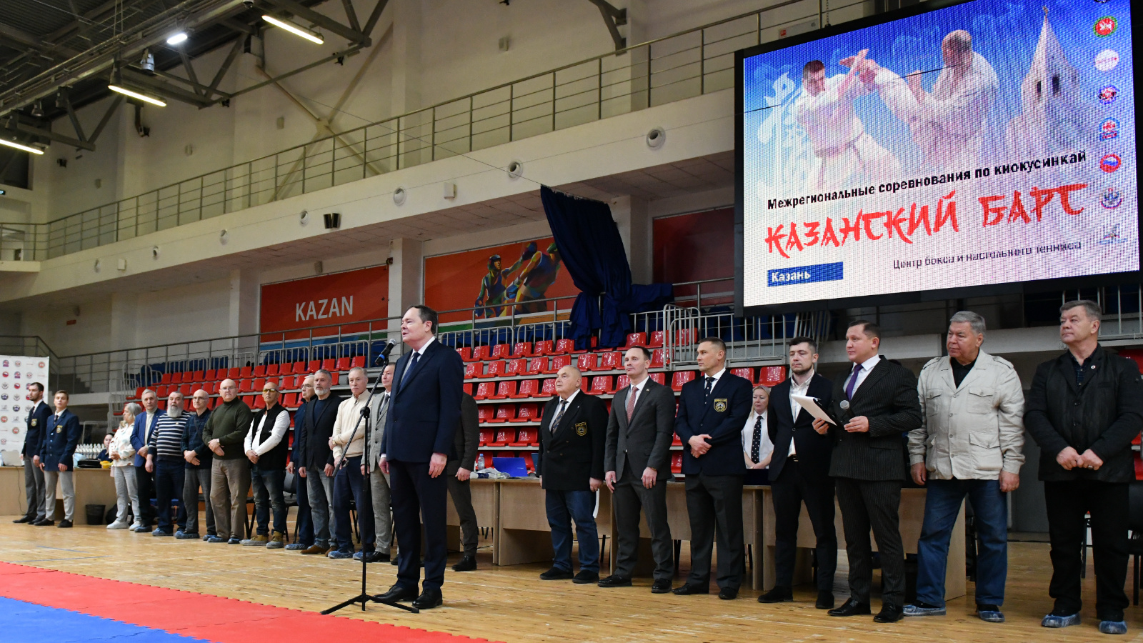 в спортивном комплексе «Центр бокса и настольного тенниса», приняли участие Президент – основатель кекусинкай в СССР и России, член президиума Международного организации IFK, Заслуженный тренер России, Заслуженный работник физической культуры и спорта России - Александр Танюшкин, Президент филиала Российского Союза боевых искусств по Республике Татарстан, ректор Булгарской Исламской Академии - Фархат Хуснутдинов, Председатель региональной физкультурно-спортивной общественной организации «Кекусинкай Республики Татарстан» - Олег Гаврилов и другие почетные гости,