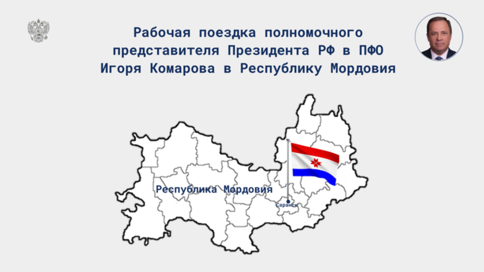 21 ноября 2023 года полномочный представитель Президента России в Приволжском федеральном округе Игорь Комаров совершит рабочую поездку в Мордовию. Планируется, что вместе с главой региона Артемом Здуновым полпред проведет ряд совещаний и посетит социально значимые объекты.
