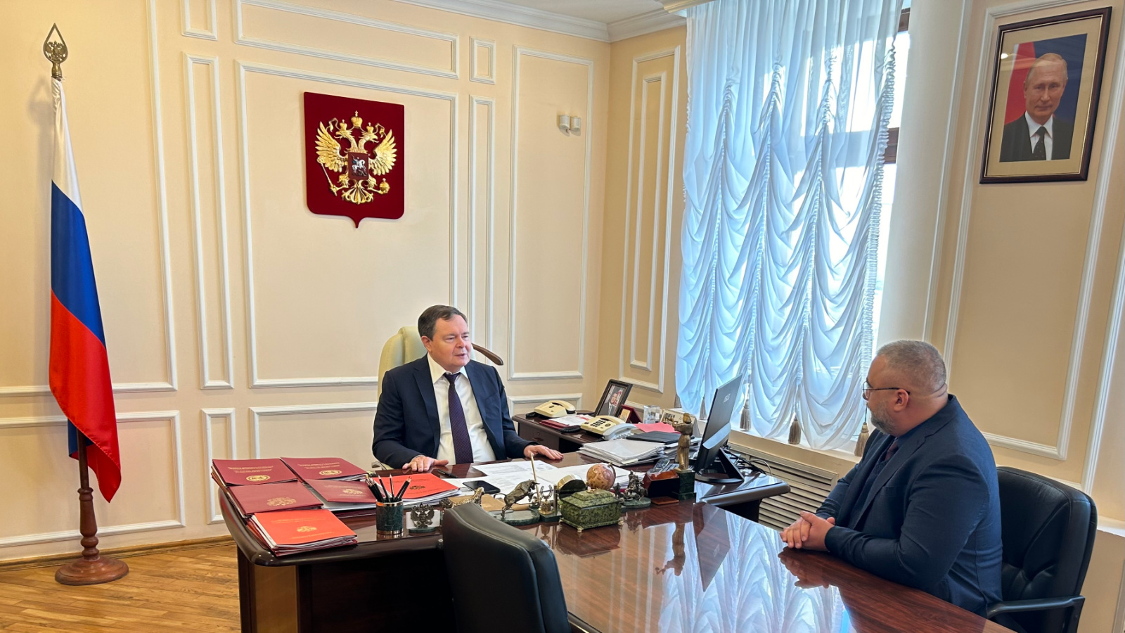 В соответствии с поручением полномочного представителя Президента Российской Федерации в Приволжском федеральном округе Игоря Комарова 7 декабря 2023 года Главный федеральный инспектор по РТ Виктор Демидов провел встречу с кандидатом, планируемым к рассмотрению Высшей квалификационной коллегией судей Российской Федерации, для назначения на должность председателя Казанского гарнизонного военного суда.