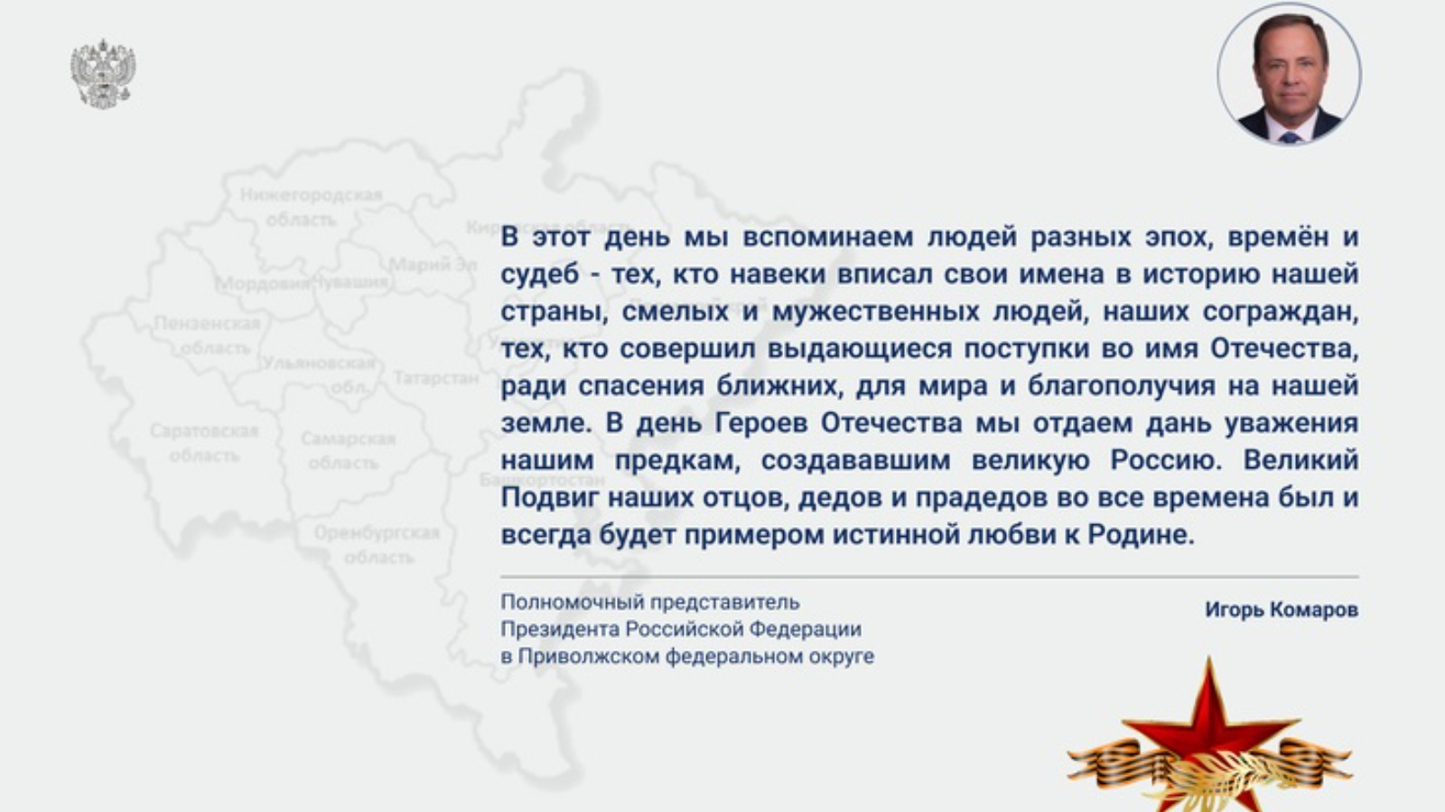 В этот памятный день от всего сердца желаю крепкого здоровья, благополучия, мирного неба и всего самого доброго Героям, всем гражданам Приволжья и всей нашей большой страны - России!
