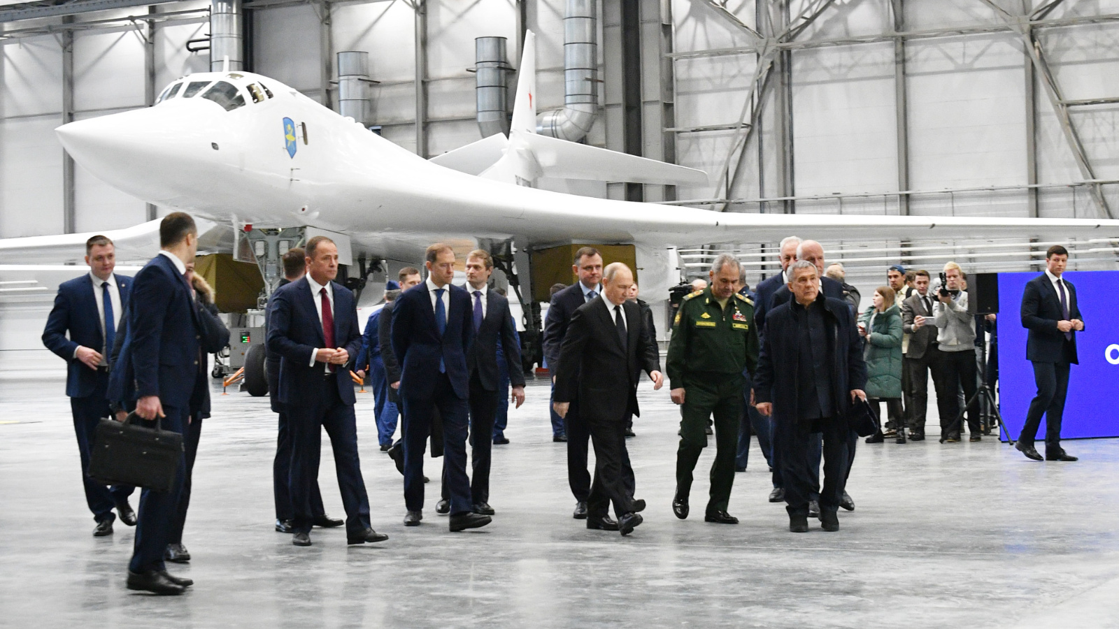 21 февраля 2024 года в Казани (Республика Татарстан) Владимир Путин посетил Казанский авиационный завод имени С.П. Горбунова. Президент ознакомился с информационными стендами о работе КАЗа и осмотрел четыре глубоко модернизированных стратегических ракетоносца Ту-160М. Владимир Путин поднялся на борт одного из них – в кабину за штурвал.