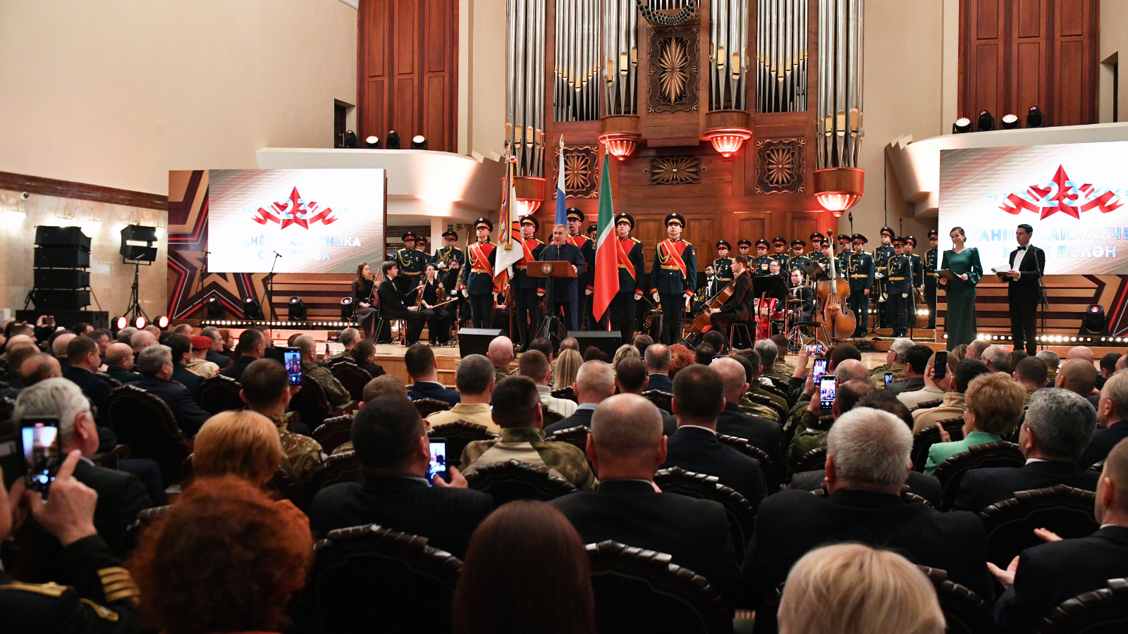 23 февраля 2024 года в ГБКЗ им. С.Сайдашева состоялось торжественное мероприятие, посвящённое празднованию Дня Защитника Отечества. В мероприятии приняли участие Глава (Раис) РТ Рустам Минниханов, Государственный Советник РТ Минтимер Шаймиев, Главный федеральный инспектор по РТ Виктор Демидов и другие представители органов государственной власти.