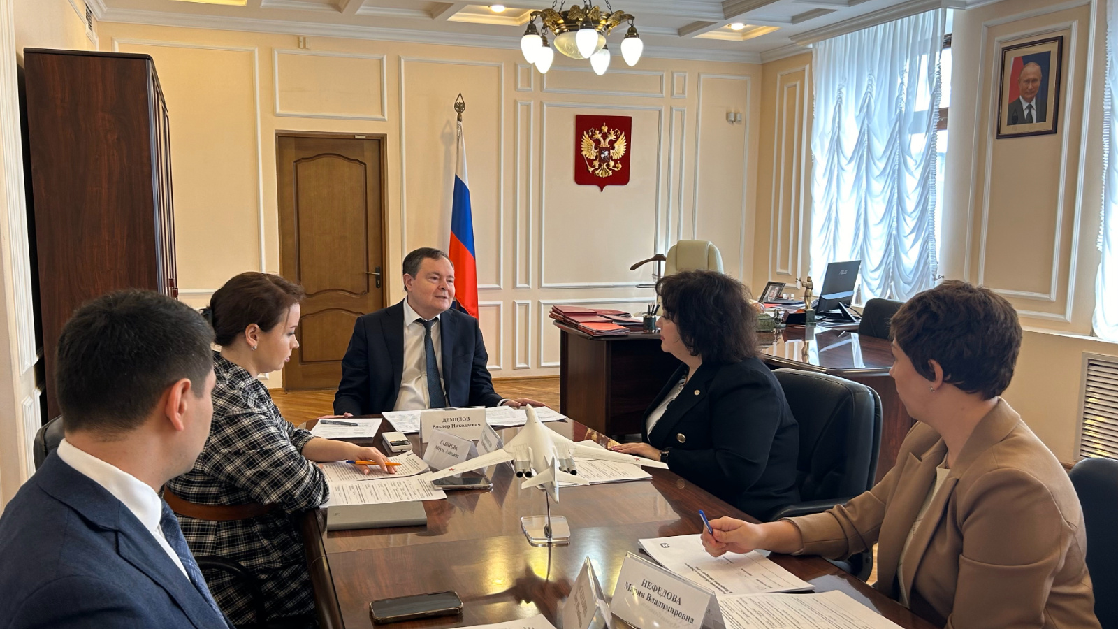 По поручению полномочного представителя Президента РФ в ПФО Игоря Комарова 25 марта 2024 года Главный федеральный инспектор по РТ Виктор Демидов провёл рабочее совещание по вопросу развития филиала Общероссийской общественно-государственной просветительской организации «Российское общество «Знание» в Республике Татарстан. В совещании приняли участие председатель Татарстанского регионального отделения Российского общества «Знание» Асия Тимирясова, директор филиала Общероссийской общественно-государственной просветительской организации «Российское общество «Знание» в РТ Мария Нефедова, заместитель министра образования и науки РТ Рамис Музипов и заместитель министра по делам молодежи РТ Айгуль Сабирова.