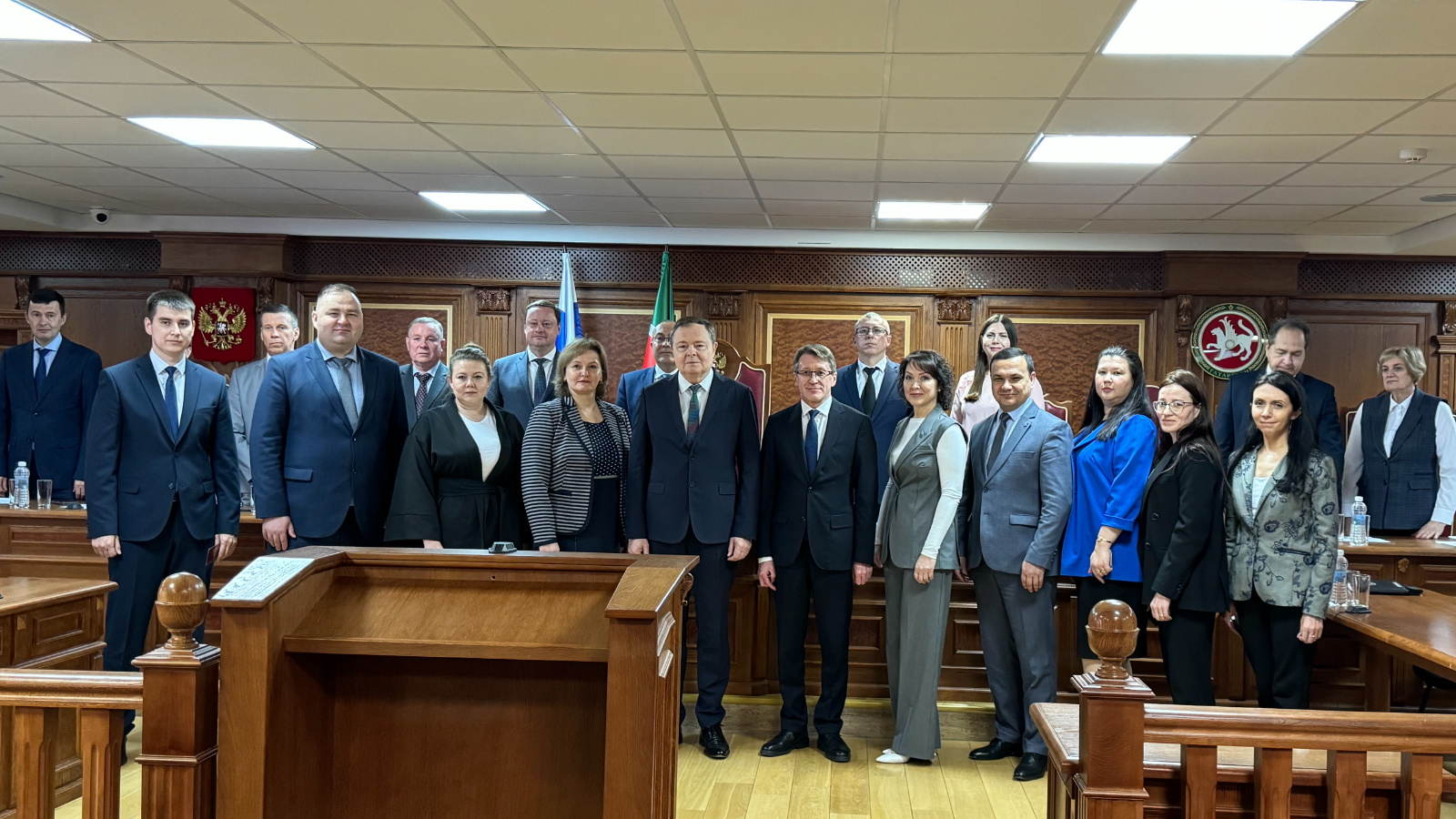 По поручению полномочного представителя Президента Российской Федерации в Приволжском федеральном округе Игоря Комарова Главный федеральный инспектор по Республике Татарстан Виктор Демидов вручил удостоверения судьям, назначенным Указами Президента Российской Федерации от 19.04.2024 № 274 «О назначении судей федеральных судов и о представителях Президента Российской Федерации в квалификационных коллегиях судей субъектов Российской Федерации».