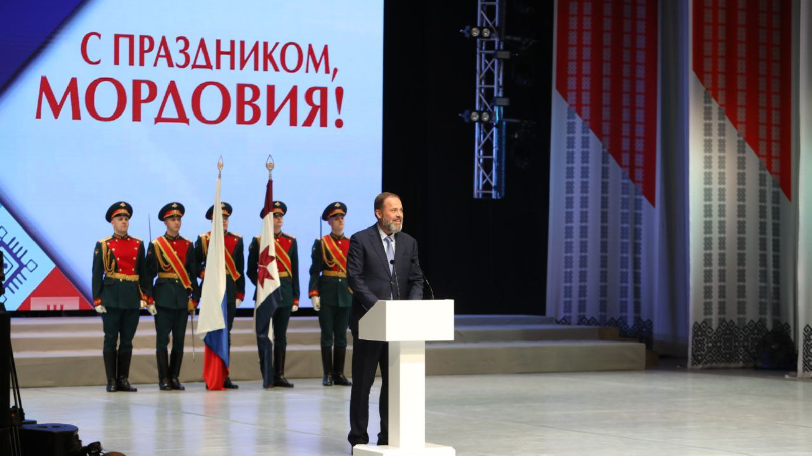 Жителей и гостей республики с 95-летием образования Мордовской автономии поздравил полномочный представитель Президента РФ в Приволжском федеральном округе Игорь Комаров. Он отметил достижения региона в сфере экономики, образования, культуры, сельского хозяйства, промышленности: «Республика – это динамично развивающийся субъект Федерации. Строятся дороги, поликлиники и жилые дома, открываются новые школы и детские сады. Особое внимание уделяется поддержке семей и развитию талантливой молодёжи. Мордовия – индустриально-аграрный регион, обладающий значимыми для всей страны компетенциями – оптоволокно, радиоэлектронная промышленность, биотехнологии, которые важны в том числе для сферы оборонной промышленности. Расположенные здесь предприятия ОПК выпускают наиболее востребованные образцы вооружения и техники.