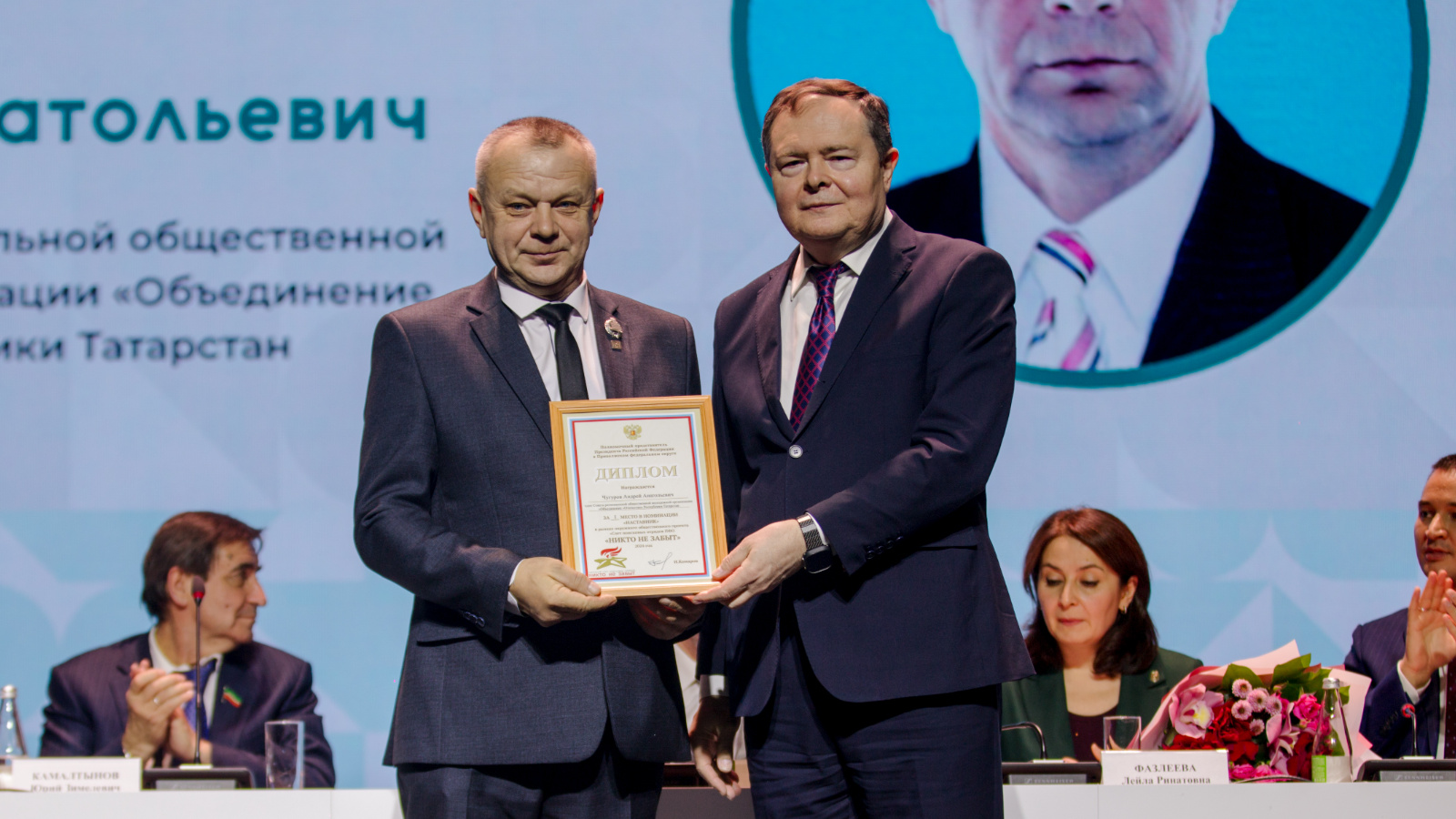 По поручению полномочного представителя Президента Российской Федерации в Приволжском федеральном округе Игоря Комарова Виктор Демидов вручил диплом призера Чугурову Андрею Анатольевичу — члену Совета региональной молодежной организации «Объединение «Отечество» Республики Татарстан, который занял первое место в номинации «Наставник» в рамках окружного общественного проекта «Слет поисковых отрядов ПФО «Никто не забыт».