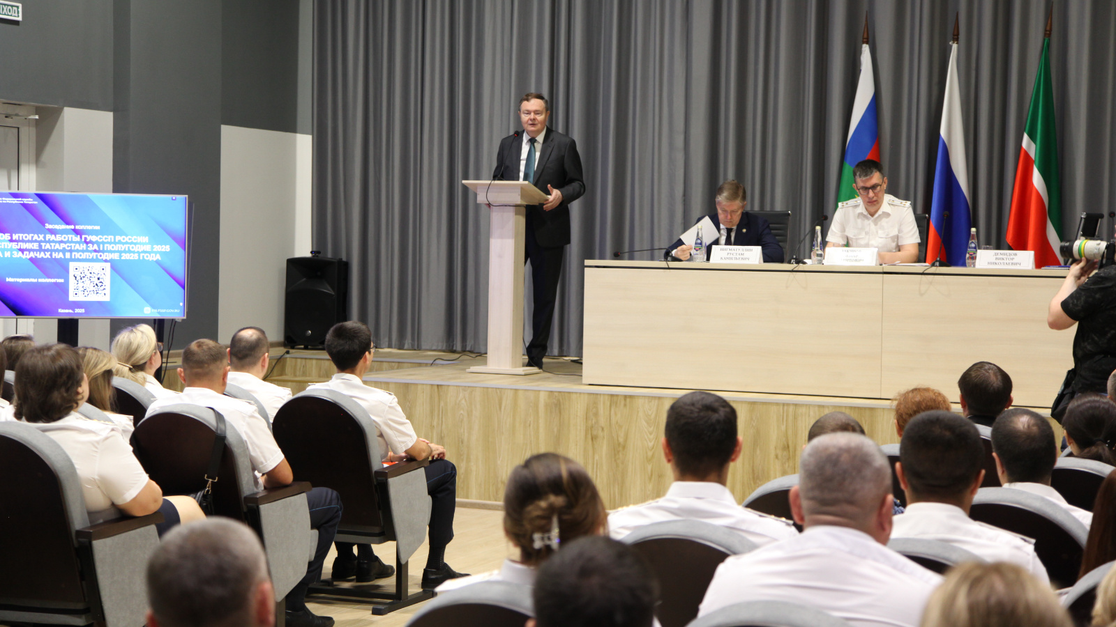 С докладом «Об итогах деятельности Главного управления Федеральной службы судебных приставов по Республике Татарстан за 1 полугодие и задачах на 2 полугодие текущего года выступил руководитель ГУ ФССП России по РТ Анвар Закиров».
