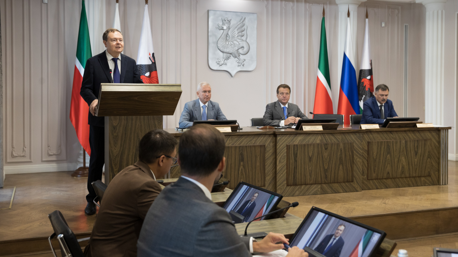 28 июля 2025 года в мэрии Казани, в рамках рабочего совещания, которое провел мэр Казани Ильсур Метшин, в торжественной обстановке Главный федеральный инспектор по Республике Татарстан Виктор Демидов вручил Благодарности полномочного представителя Президента Российской Федерации в Приволжском федеральном округе Игоря Комарова сотрудникам мэрии Казани. Благодарности получили: