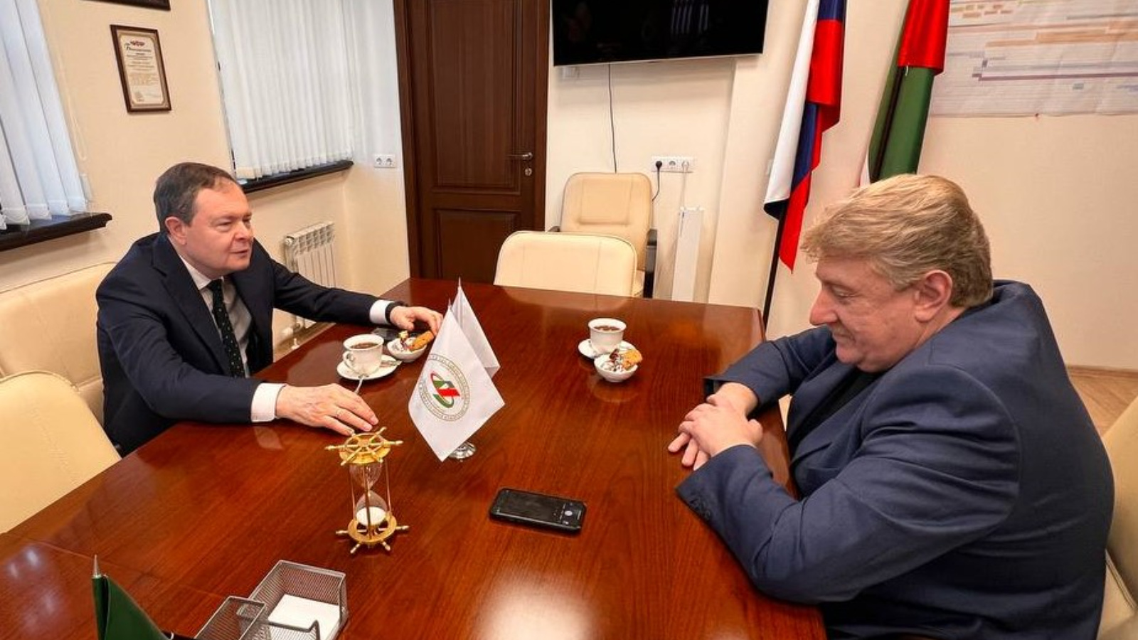 14 сентября 2025 года в Центральной избирательной комиссии Республики Татарстан состоялась рабочая встреча Главного федерального инспектора по Республике Татарстан Виктора Демидова с Председателем Центральной избирательной комиссии Республики Татарстан Андреем Кондратьевым.