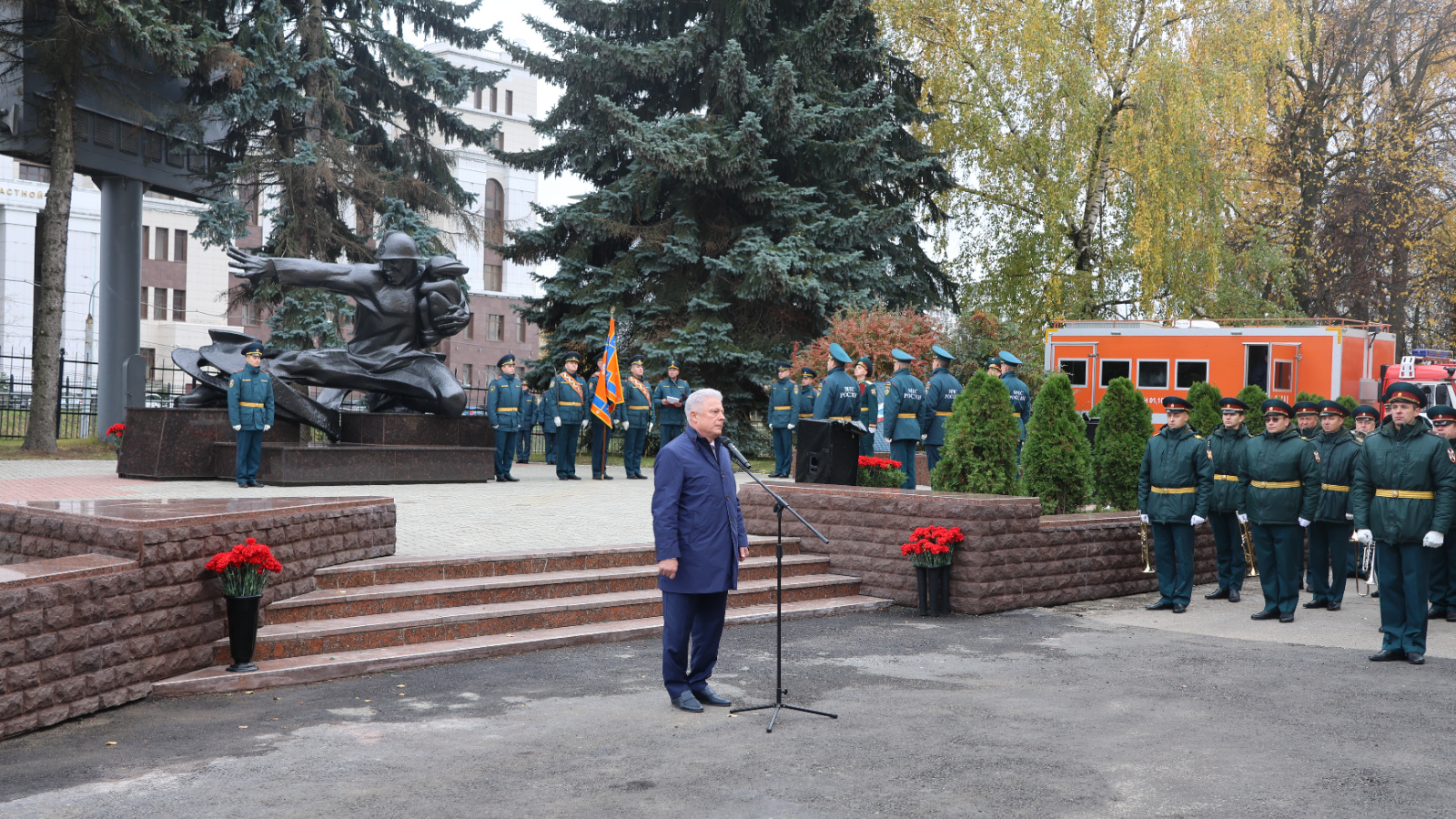 15 октября 2025 года в Главном управлении МЧС России по Нижегородской области состоялось торжественное открытие отреставрированного монументального комплекса «Подвиг Пожарного». На мероприятии присутствовали заместитель полномочного представителя Президента России в Приволжском федеральном округе Игорь Паньшин, а также руководство главка, региональной власти, действующие сотрудники и ветераны МЧС, курсанты пожарно-спасательной академии, общественность.