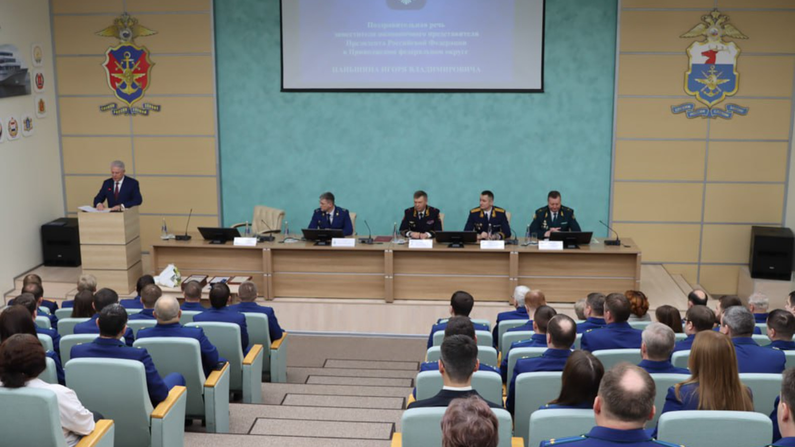 От имени полномочного представителя Президента РФ в ПФО Игоря Комарова с профессиональным праздником всех собравшихся поздравил заместитель полпреда Игорь Паньшин. В своем приветственном слове он подчеркнул: «Прокуратура – один из важнейших государственных институтов, гарант законности и правопорядка в обществе. Профессионализм, компетентность и преданность долгу сотрудников прокуратуры обеспечивают эффективную защиту прав и законных интересов граждан и государства. Лучших представителей прокурорского корпуса всегда отличали и продолжают отличать высокий профессионализм и личная порядочность. Благодаря вашей компетентности, принципиальной и твердой позиции обеспечивается транспортная безопасность не только на территории Приволжского федерального округа, но и в ряде регионов Центрального и Уральского округов, имеющих высокий социально-экономический потенциал и уровень пассажиропотока».