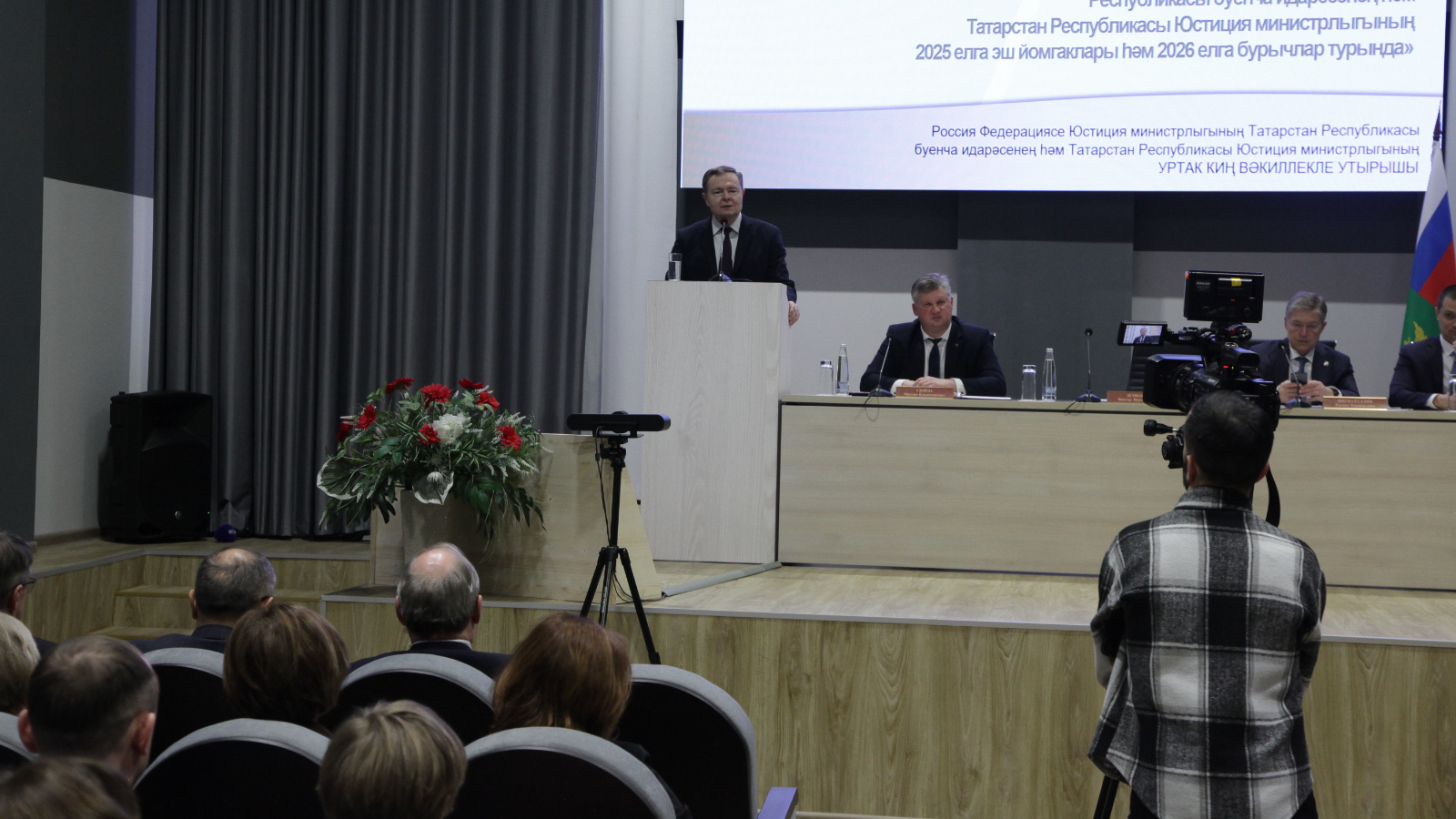 Об итогах деятельности в 2025 году и задачах на 2026 год представили доклады начальник Управления Министерства юстиции РФ по РТ Максим Скирда, министр юстиции РТ Рустем Загидуллин и заместитель председателя Верховного Суда Республики Татарстан по административным делам Эдуард Каминский.