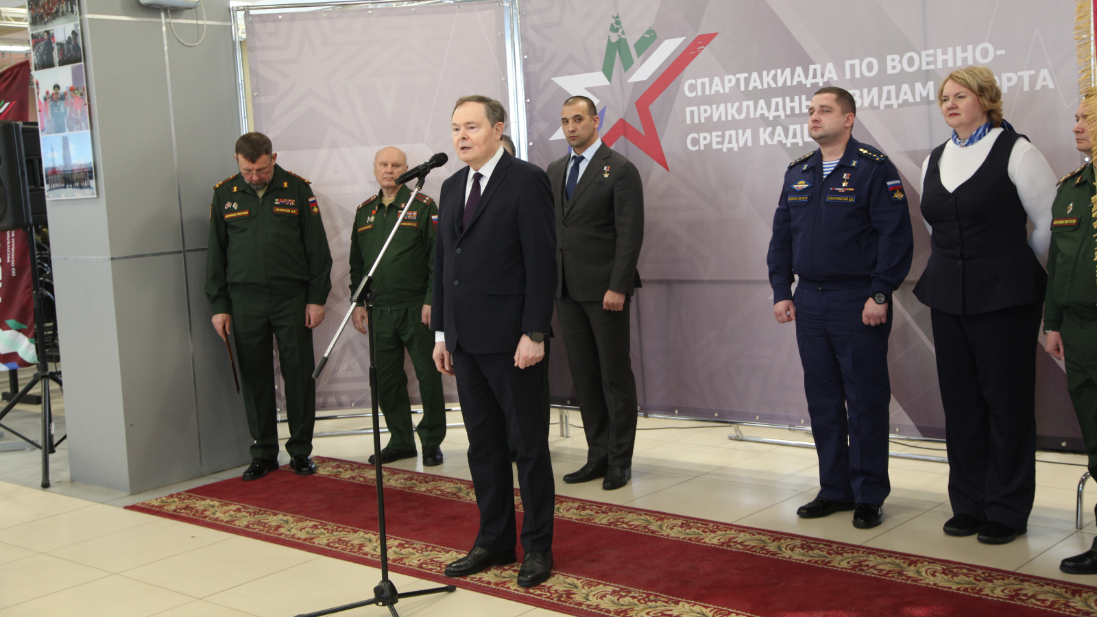 От имени полномочного представителя Президента Российской Федерации в Приволжском федеральном округе Игоря Комарова Главный федеральный инспектор по Республике Татарстан Виктор Демидов приветствовал участников соревнований.
