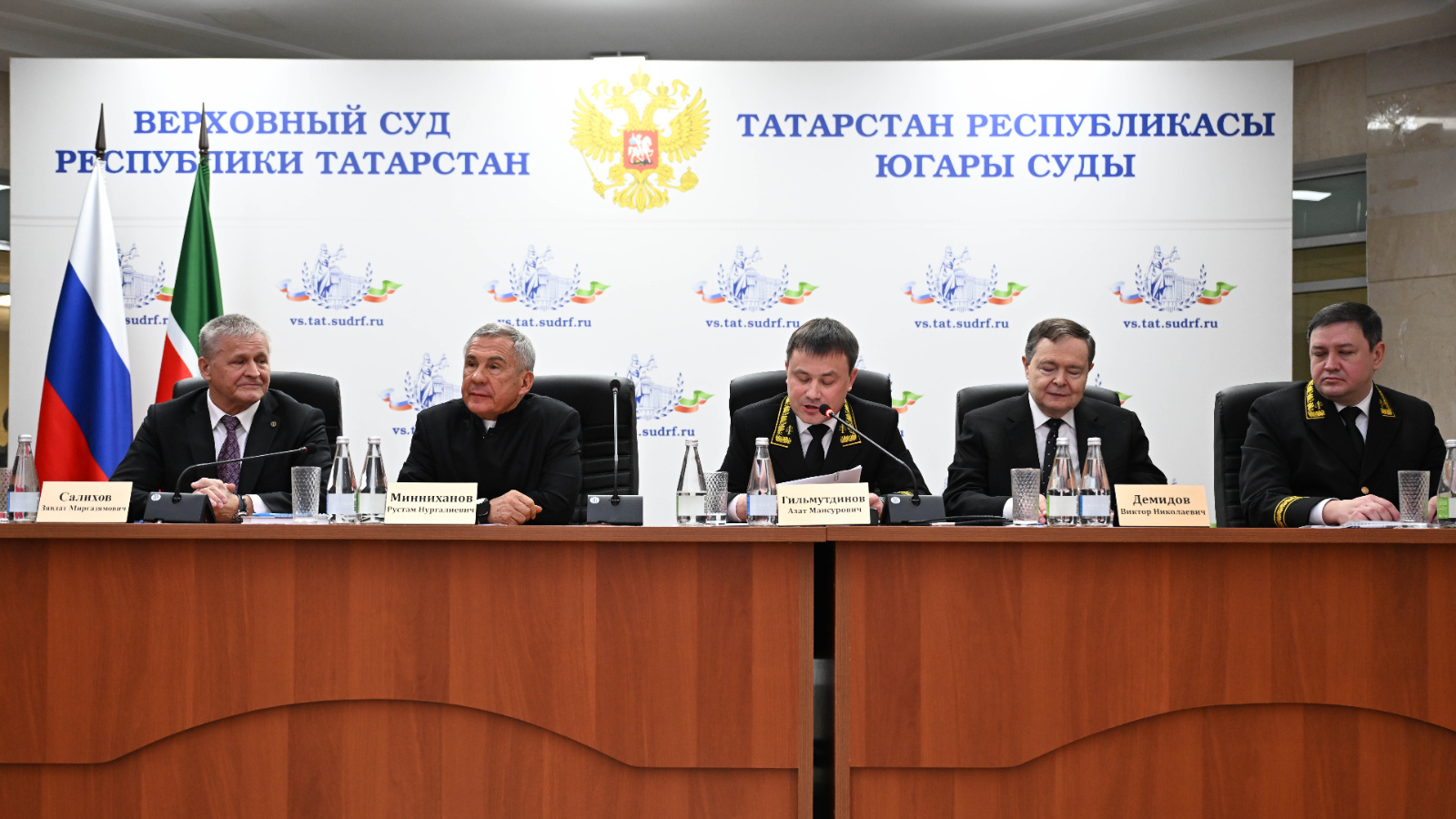 В мероприятии приняли участие Глава (Раис) Татарстана Рустам Минниханов, Главный федеральный инспектор по Республике Татарстан Виктор Демидов, прокурор РТ Альберт Суяргулов, начальник УФСБ России по Республике Татарстан Игорь Хвостиков, министр внутренних дел по РТ Дамир Сатретдинов, начальник УФСИН России по РТ Эдуард Хиалеев, начальник Управления Федеральной службы войск национальной гвардии РФ по РТ Рустем Гумеров, другие руководители органов власти, представители судейского сообщества Татарстана.