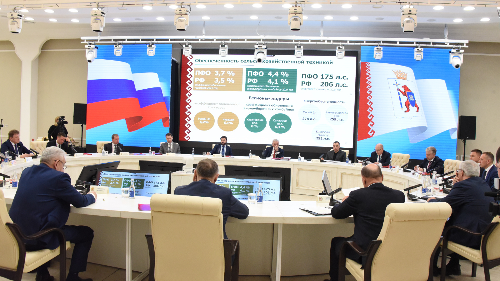Председатель Госсобрания Республики Марий Эл Михаил Васютин рассказал о достижениях агропромышленного комплекса. «Развитие АПК – основа продовольственного суверенитета. Округ обеспечивает себя продуктами животноводства и формирует четверть общероссийской сельхозпродукции. Приоритеты: вовлечение неиспользуемой пашни, технологический суверенитет, поддержка молочного животноводства и развитие переработки», – сказал он.