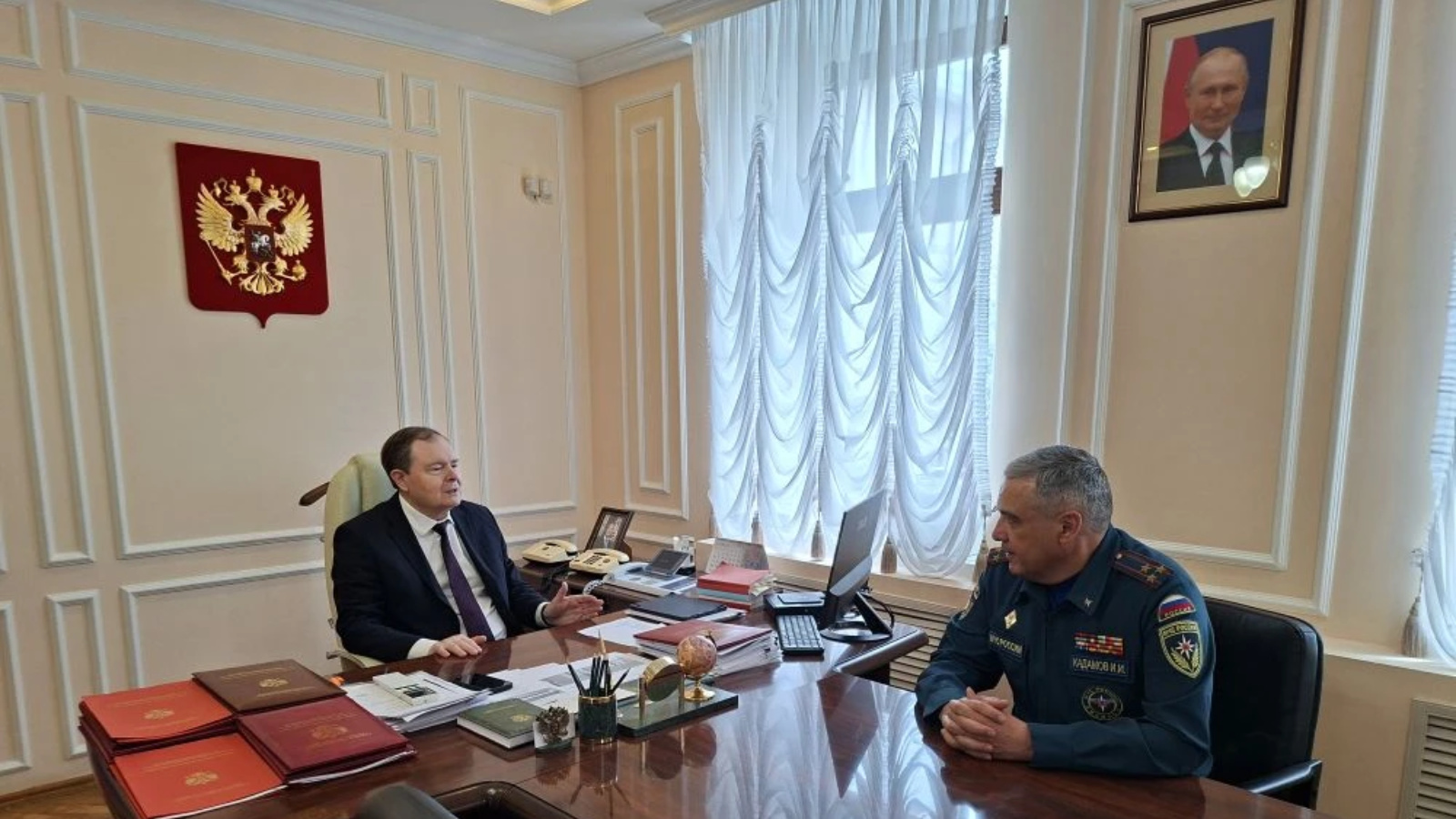 Главный федеральный инспектор по Республике Татарстан Виктор Демидов провёл рабочую встречу с начальником Главного управления МЧС РФ по РТ, полковником внутренней службы Иреком Кадамовым.