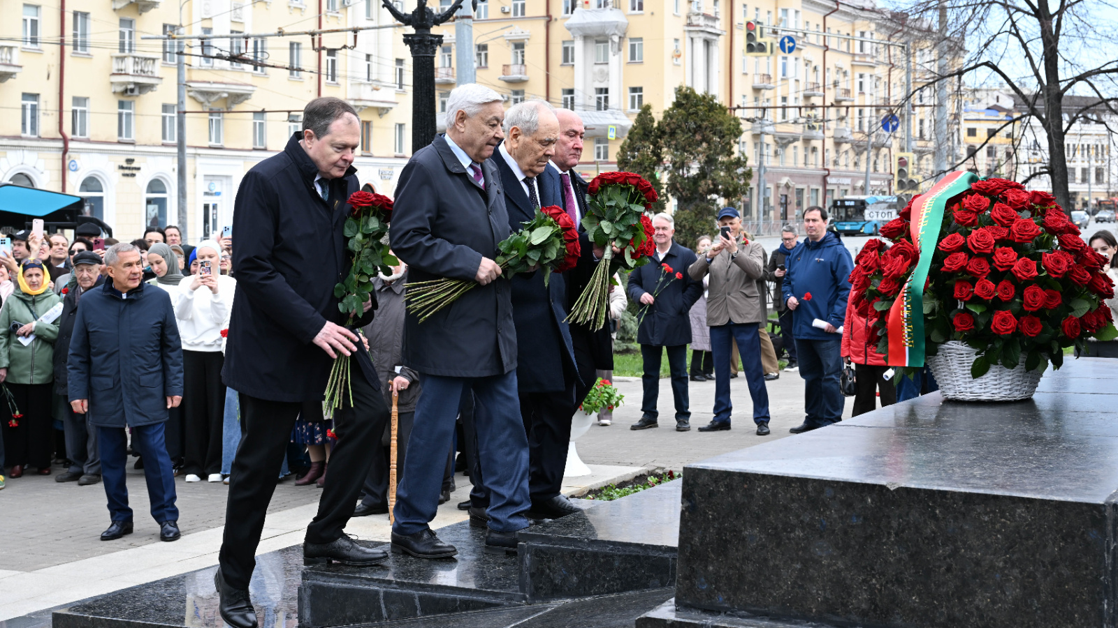 Глава (Раис) Республики Татарстан Рустам Минниханов, Государственный Советник Республики Татарстан Минтимер Шаймиев и Главный федеральный инспектор по Республике Татарстан Виктор Демидов возложили цветы к подножию памятника великому татарскому поэту.